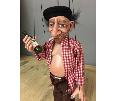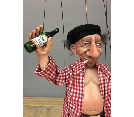 -JACK SPARROW handcrafted puppet built in rigid material (resin) with metal stem, leg and footwear in carved and hand painted wood.