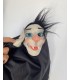 It starts with a 12x11x8cm solid cube of soft foam rubber and the face or figure is carved with scissors. With its cloth and its hands already extended it is 55x55cm in length. To manipulate it, the fingers are inserted behind his face, 2 fingers up and down the thumb below the slit of his mouth and when moving them, he gestures all over his face. It is also very important to turn the wrist that gives more realism to the look of him. The Dràcula Gestual puppet has incredible realism and delights the little ones.